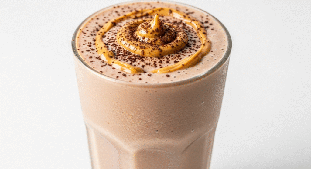 This smoothie recalls a peanut butter cup. It blends banana and cocoa for richness.