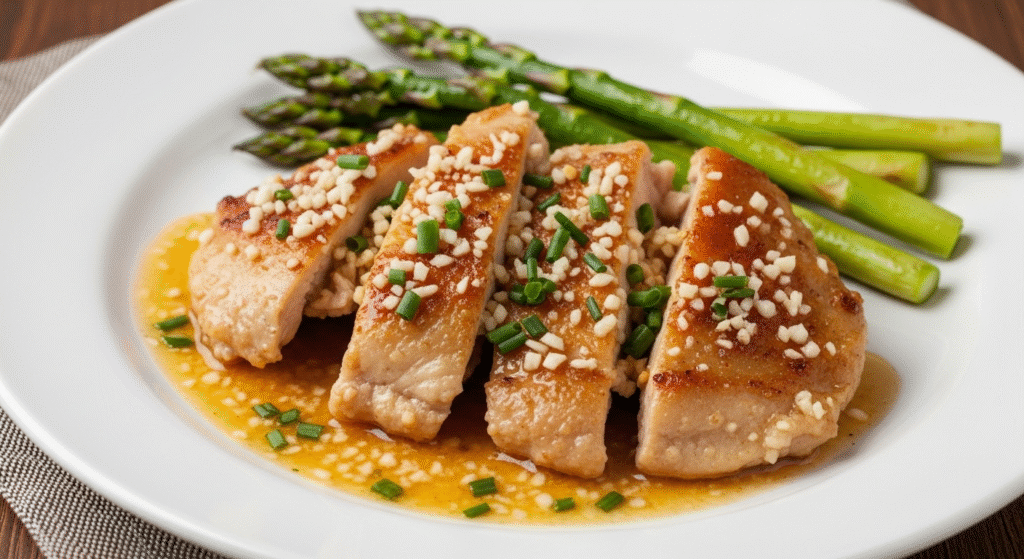 | 15-Minute Garlic Butter Chicken with Asparagus | 6g | 15 mins |