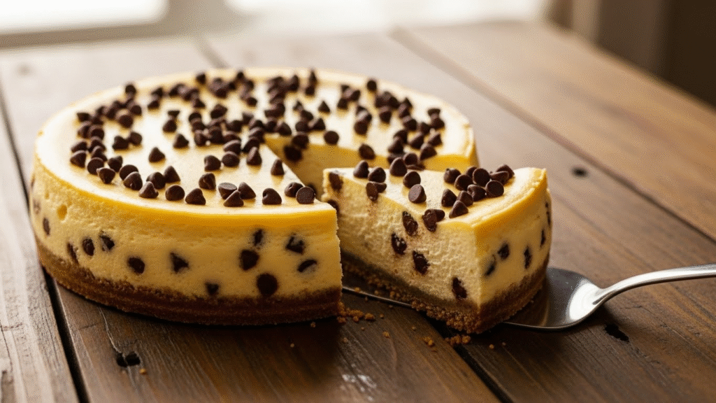 This recipe makes a creamy cheesecake with bits of chocolate in every bite. It uses a basic crust and simple filling. Bake it for special days or family meals. Research shows most people want easy steps and tips to avoid cracks.