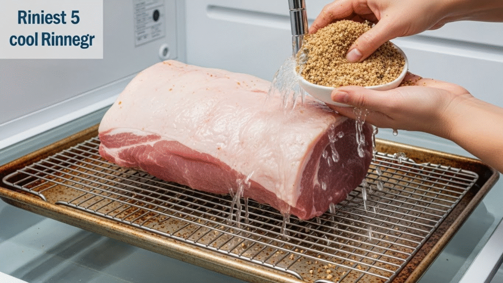- Rinse and Dry: Take out pork. Rinse under cold water for 30 minutes. This cuts salt. Pat dry with towels. Let air dry in fridge overnight. It forms a skin for smoke to stick.